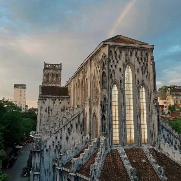 Located behind the historic church, Moon Men offers a stunning and romantic view — especially this photograph capturing a vibrant rainbow arching across the sky.
